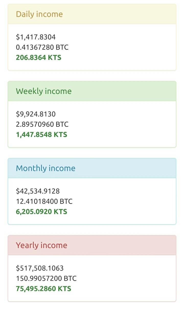 Klimatas has list on hosting masternode, let see how big masternode income if you hold 1Masternode, you can buy 1 Masternode by pay 2 BTC on presale. this is the picture i get from https://masternodes.online/currencies/KTS/