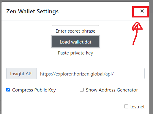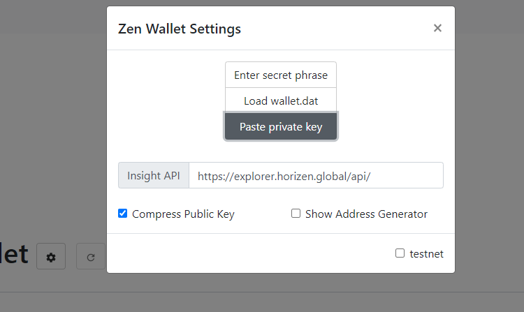 Copy the Private key and insert it into myzenwallet.