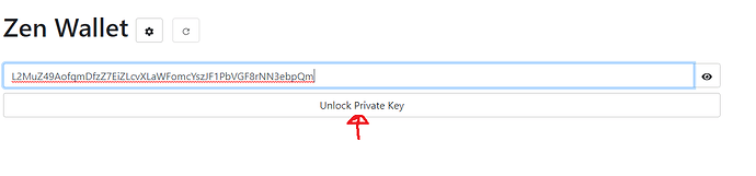 Copy Private key, insert it into myzenwallet and click on unlock PK