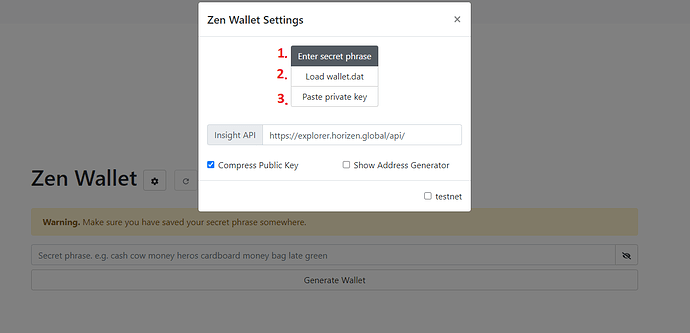 1. Chose the first option: Enter secret phrase