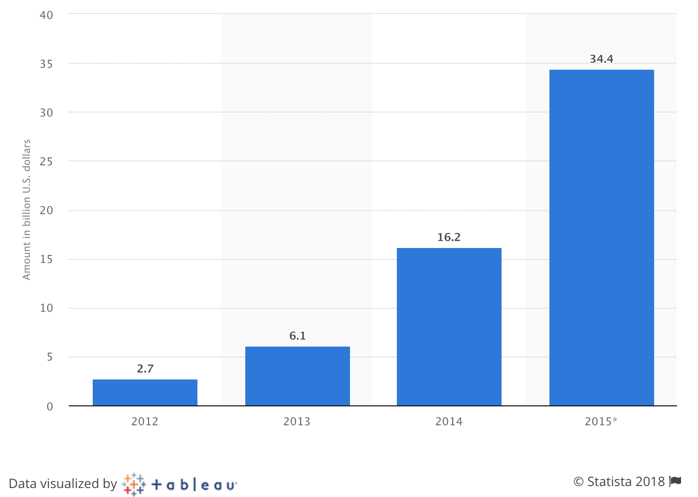 Graph by Statista: total crowdfunding volume worldwide from 2012–2015