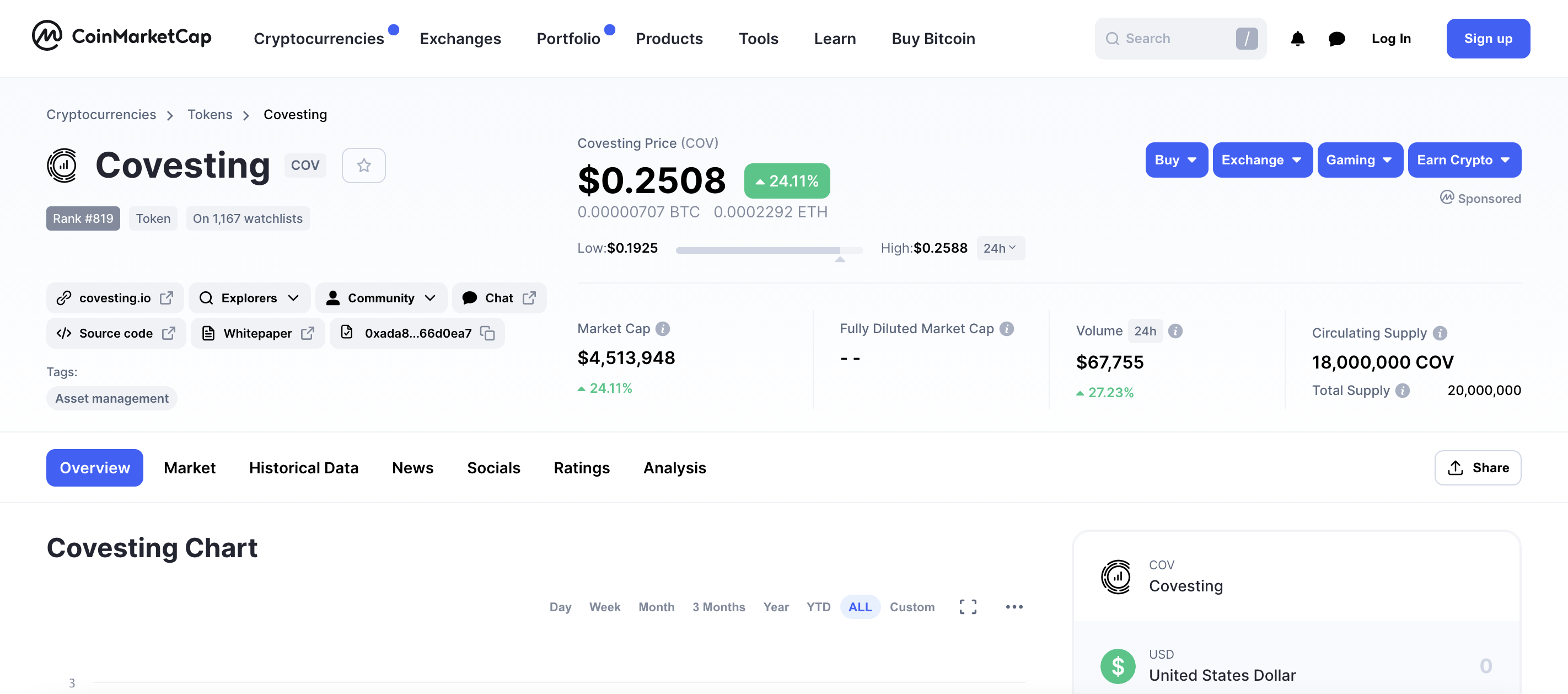 The COV token was created as a vehicle for value to flow between users when they covest, and as a result of the kind of value that can be unlocked using the COV it has been one of the most profitable tokens in the cryptocurrency market to investing over the past 12 months, with a price growth of more than 1,000% during that time.