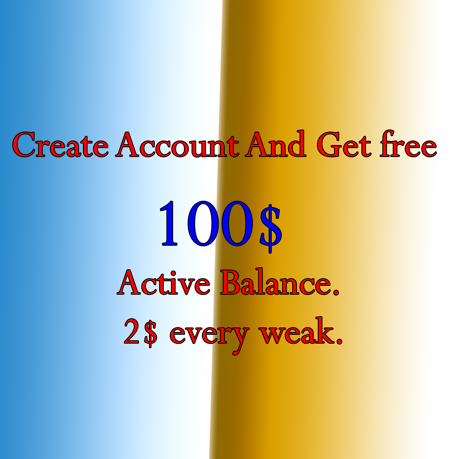 Create Account And Get free 100$. 2$ every weak.