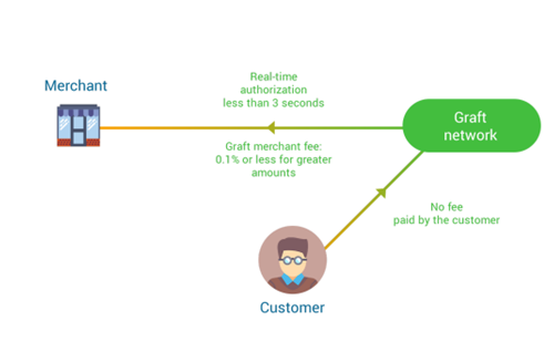 GRAFT processes all its transactions in “real time” (we expect most transactions to be completed in less than 3 seconds). Critically, GRAFT achieves this real-time payment without charging the customer an extra fee.