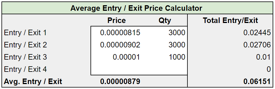 Average Entry / Exit Price Calculator