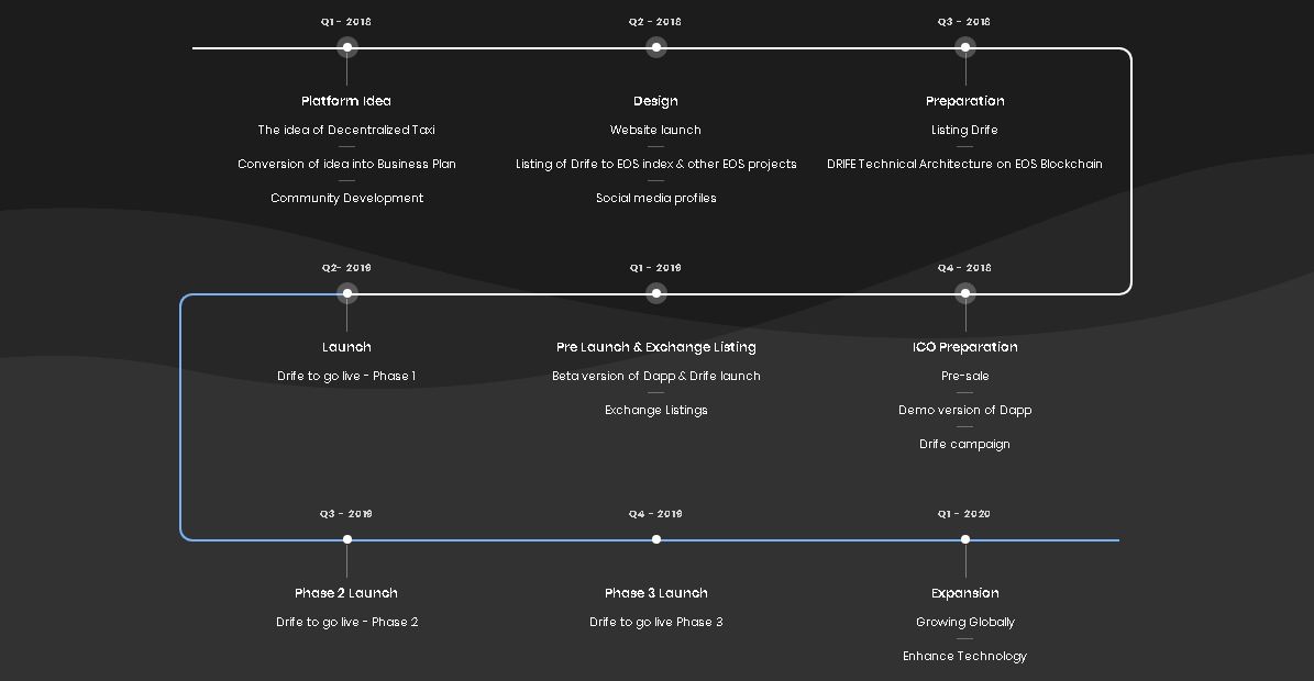 DRIFE is a decentralized ride-hailing platform powered by blockchain with the intent of empowering both, the drivers and commuters,and community developers. DRIFE plans to disrupt the existing business model and remove the corporate intermediaries involved in the transactions. Our ride-hailing platform has created a new paradigm for the ride-hailing industry. We are the first platform in this niche to express the full features of the decentralized ride-hailing economy. With the power of the Blockchain technology, the DRIFE platform strives to bring a new paradigm to the ride-hailing platform and solve the horde of issues that have emerged from the current model of centralized business. The growth of the platform not only contributes to the objective of DRIFE but also enhance the overall value provided to all the stakeholders concerned like driver’s income, commuters fare, cybersecurity and transparent governance.To give the power back to the community with a unique disruptive economic model "Let's DRIFE with freedom" ,A dApp with Smart Contracts built over the EOS Blockchain having a capability of handling unlimited transactions per second.