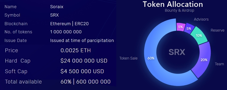 - En specialdesignad dedicerad blockchain. Under lanseringen av Soraix-plattformen tilldelas en blockchain som kännetecknas av en hög säkerhetsnivå, prestanda och ekonomisk effektivitet. Detta gäller inte bara för användare utan även för investerare.