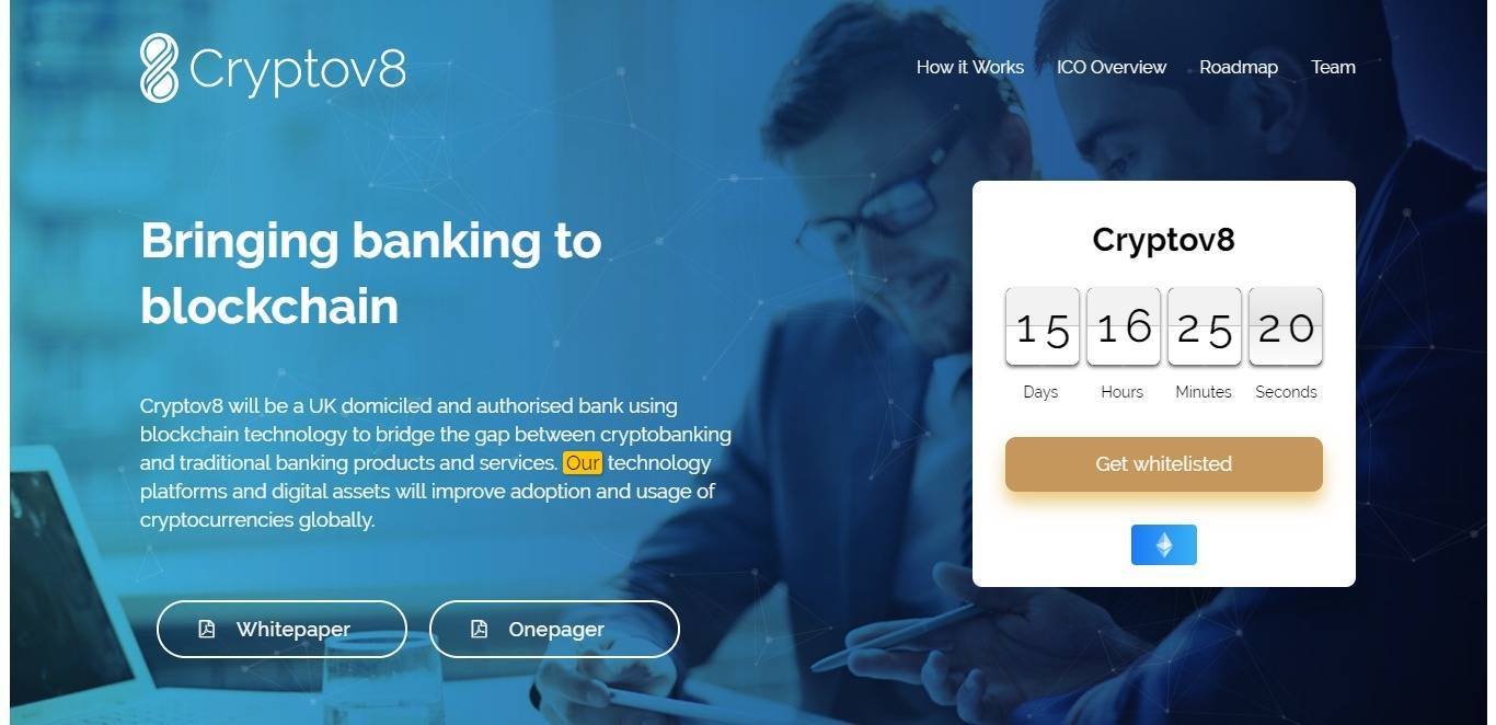 Cryptov8 is a new hope for all Blockchain technology users. This project will create a bank that will utilize Blockchain technology, with this Cryptov8 will be a bridge between Cryptobanking with Products, and traditional banking services. With Cryptov8 this will increase global adoption and use of cryptocurrency. the planned creation of this technology-blockchain bank will take place in the UK.
