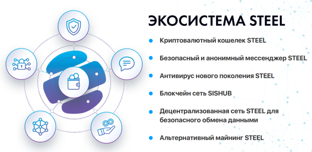 Structurally STEEL includes a comprehensive anti-virus software that operates on a blockchain, a network for secure data exchange, a crypto-currency purse, and a very interesting product - an anonymous messenger. Within the STEEL ecosystem, you can count on absolute anonymity, safety and confidentiality. With the help of STEEL, you can hide your identity and not be afraid of information leakage as a result of extraneous intrusions.