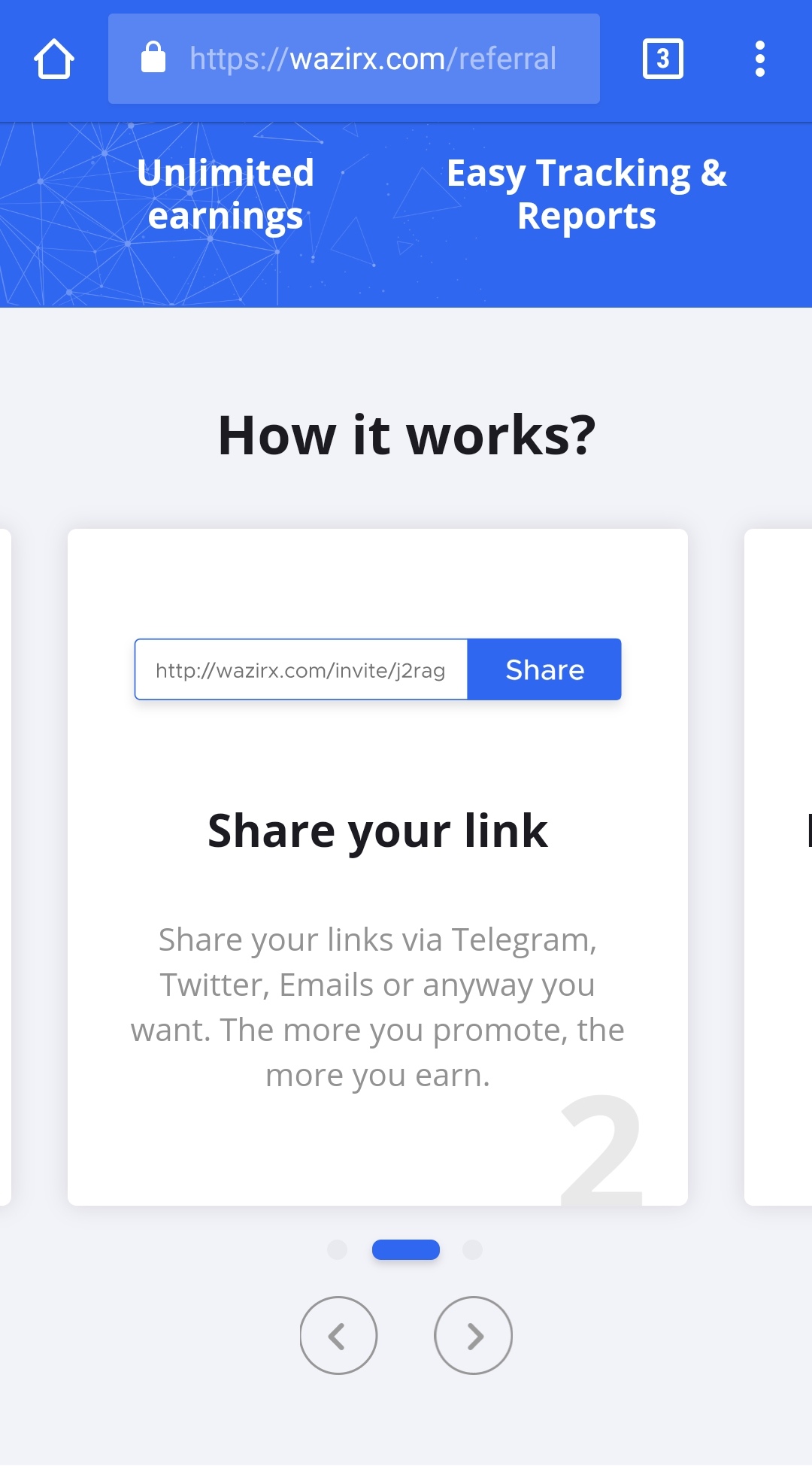 Invite people to sign up on WazirX by sharing your referral link