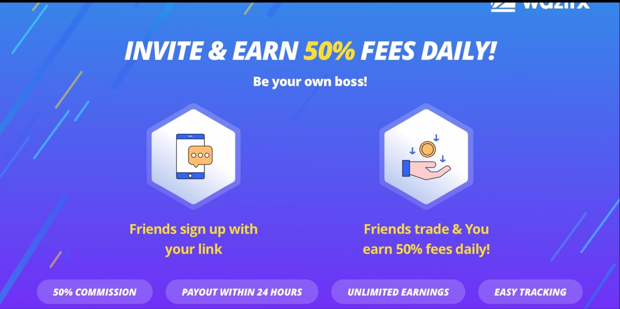 Join and get 100 WRX and refer to your friend and get 50 %trading rewards from their trading