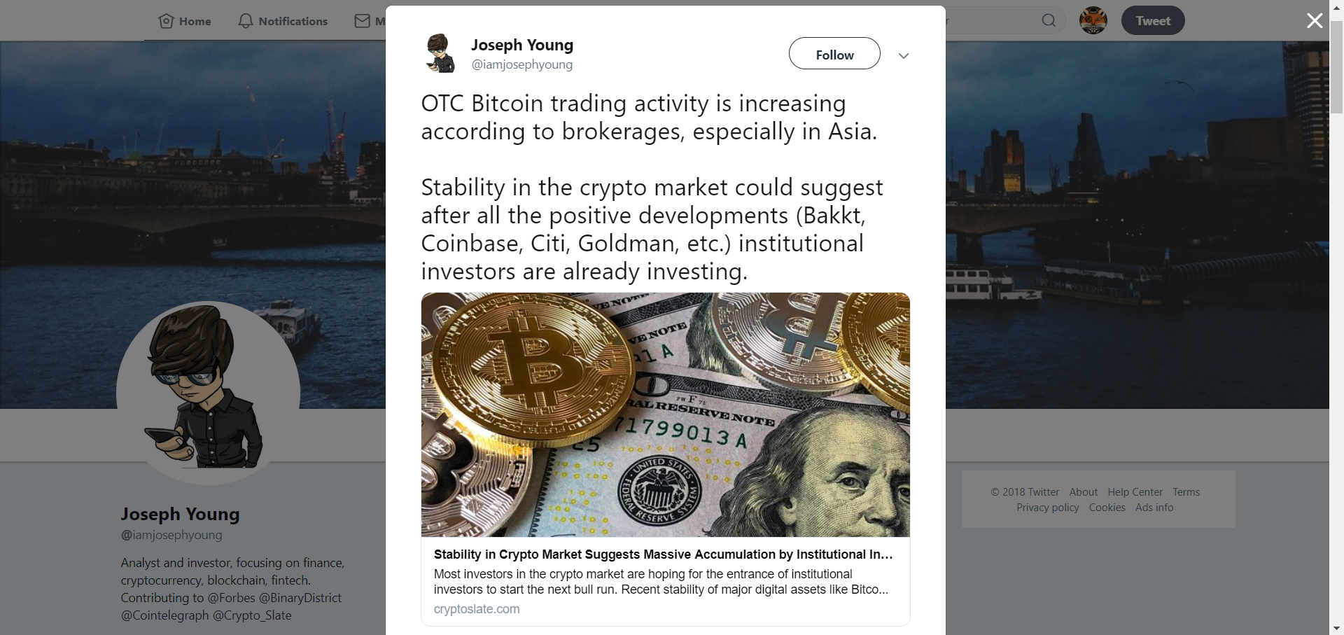 from Stability in Crypto Market Suggests Massive Accumulation by Institutional Investors by Joseph Young