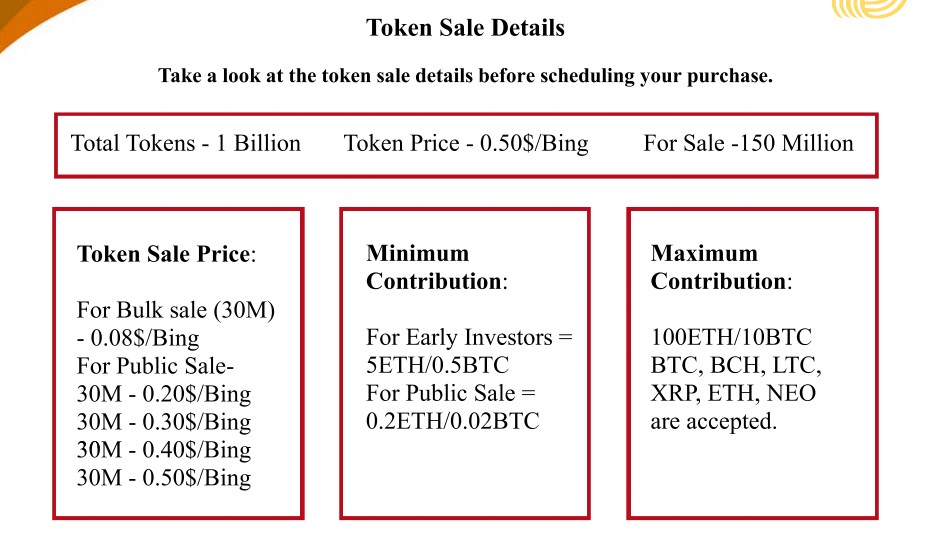 PreICO Price: 1 BING = 0.50 USD