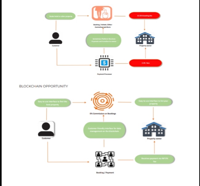 The infracoins will revolutionise the way of hotel booking and long term rental. Its main aim is to implement the Blockchain technology into the booking of hotels and hold long term rental and all the process will be online, and there is need to do some paper work for to make sure of payment confirmation. Some times landLords are force to more price of depodits and also agents take more charges for their work.