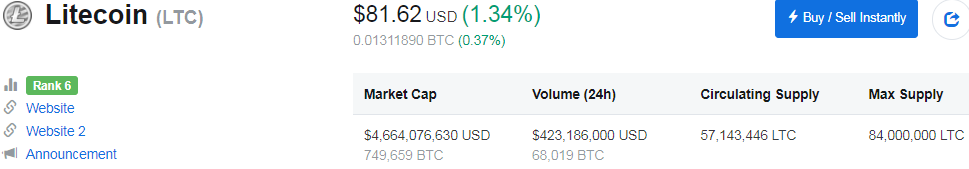 Litecoin düşüşte!benibiliyon (39)in #cryptocurrency • 8 years ago Litecoin şuan için $81.62 değerinde.1.34%düşüş var.Günlük $423,186,000 USD lik dolaşım var. Coinmarketde 6.cı yerde sabitlenmiş durumda.İşler iyiye gitmiyormuş gibi! #bitcoin #tr #litecoin