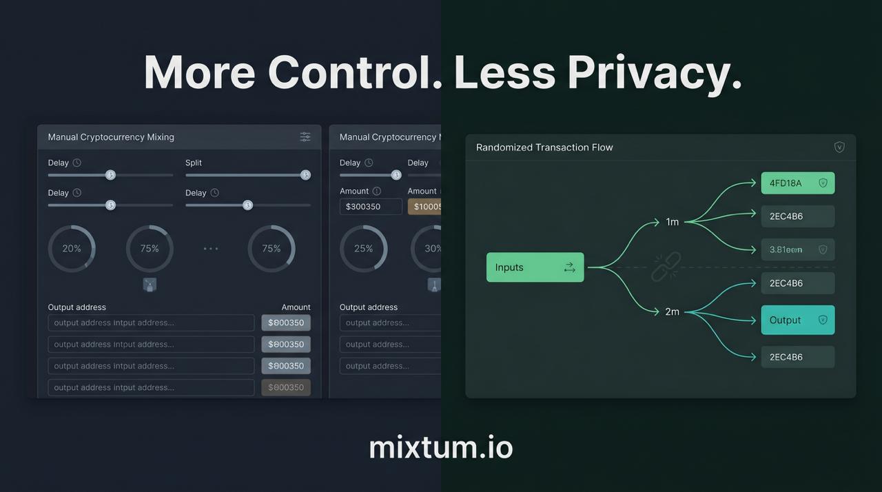 A common assumption among Bitcoin users is that more control means better outcomes. In mixing, this often translates into manually selecting delays, output splits, and transaction structures.