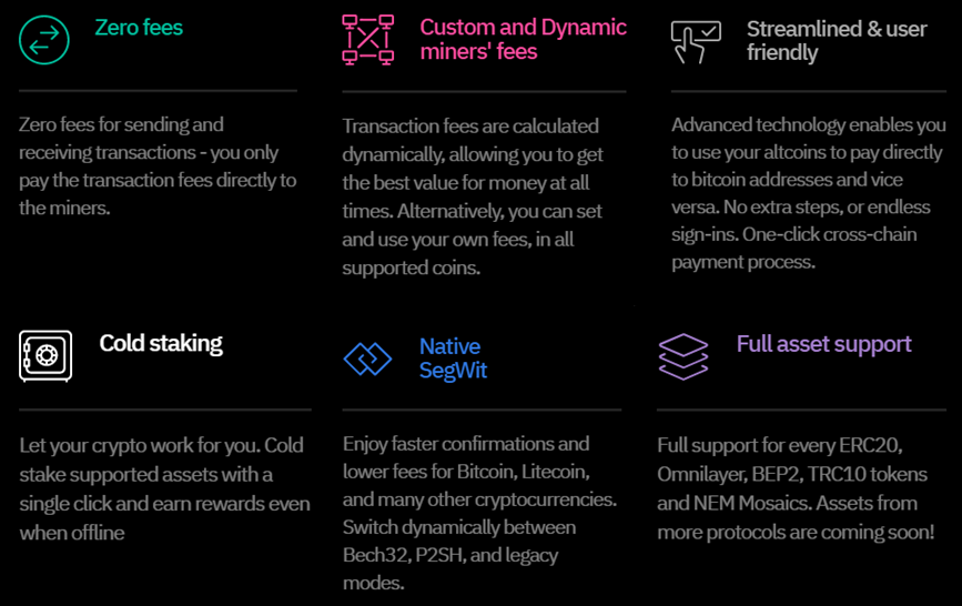 Coinomi is available as a mobile wallet on both IOS and Android, as well as a desktop wallet on Windows, Mac, and Linux. Users have full control of their private keys which are stored on the device where the wallet is installed. As a non-custodial wallet, Coinomi does not fall under the scope of the new European Anti-Money Laundering laws and is not required to implement Know Your Customer (KYC) verification.