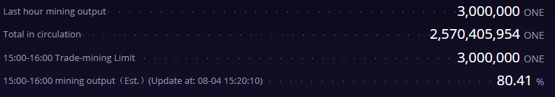 There is 2,570,405,954 ONE Tokens currently in circulation so when when all ONE Tokens are released, profitability will be 8X lower because it will be 8X more ONE Tokens that will share profit. That means that daily profitability will fall from current 1.23% to 0.15%.
