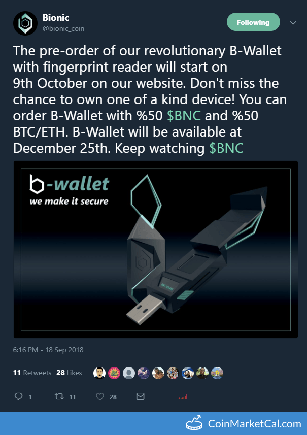 Bionic (BNC) 25 December 2018 B-Wallet Releasecoinmarketcal2 (60)in #cryptocurrency • 7 years ago - Bionic (BNC) 25 December 2018 B-Wallet Release - - https://twitter.com/bionic_coin/status/1042220740165152769 - #news #blockchain #crypto #bitcoin