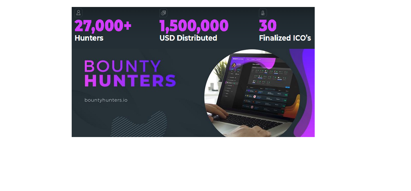 Bountyhunters.io is an online platform for conducting ico bounty in automatic mode. This platform simplifies the work of bounty hunters and projects ico conductive bounty.