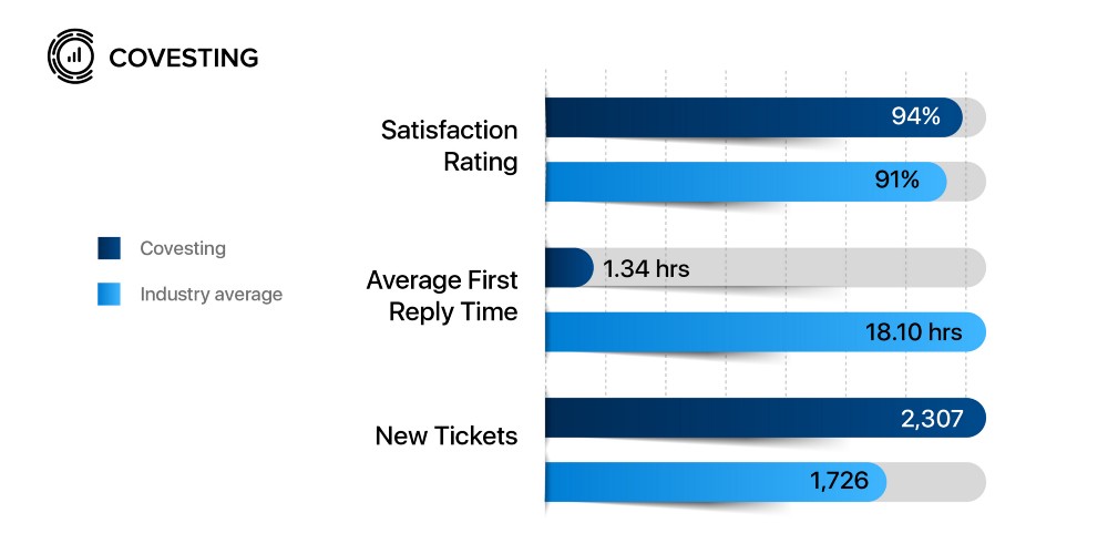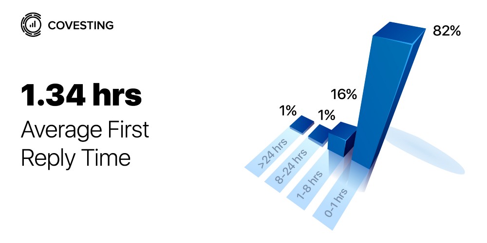 Average First Reply Time for Covesting was well ahead of the average statistical indicators: 1.34 hours against 18 hours!