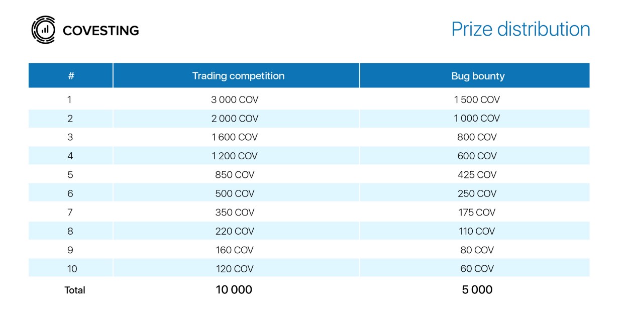 A prize of 10,000 COV will be distributed amongst the top 10 traders based on their trading performance.