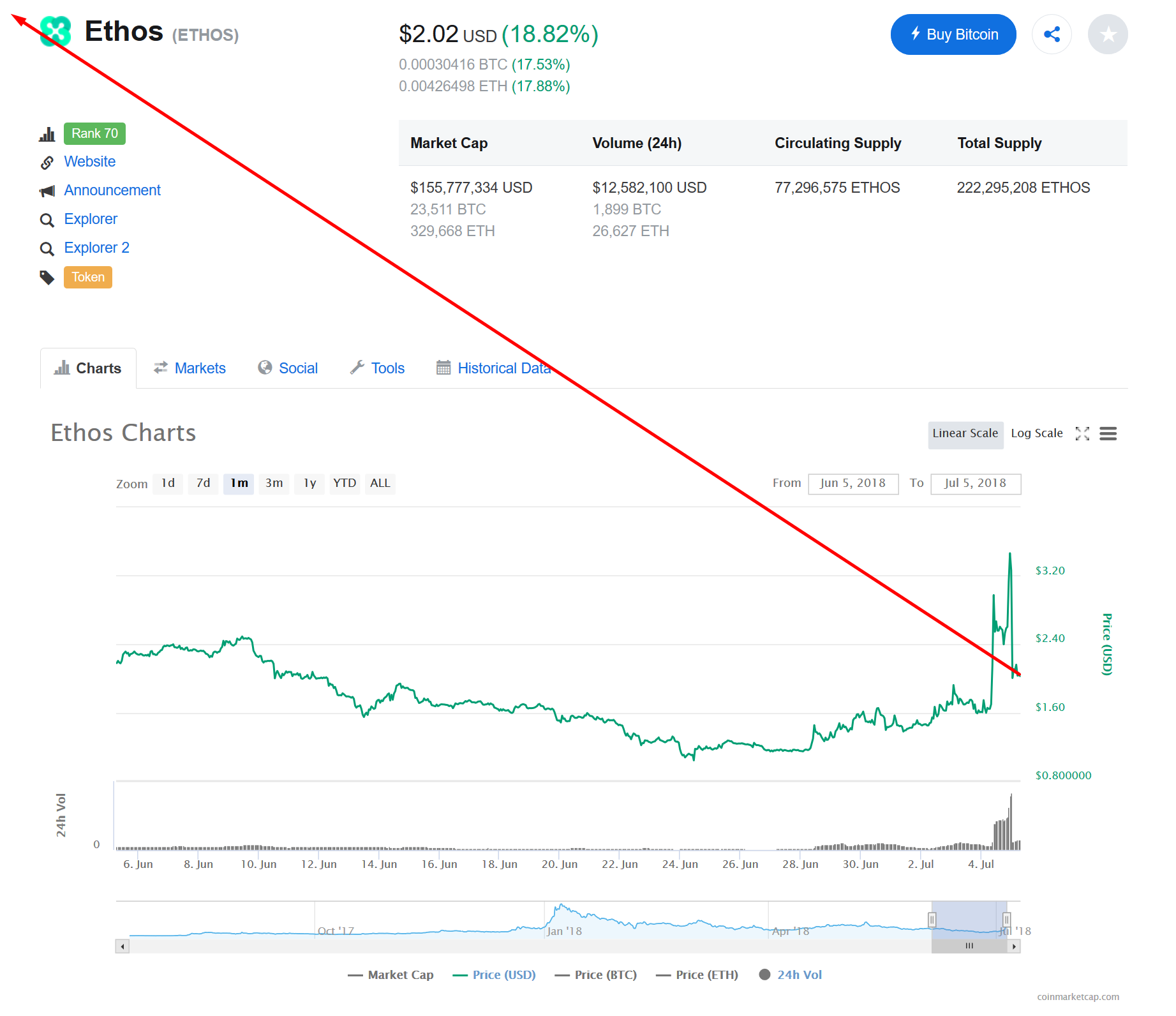 Ethos is a good coin, now its price is $ 2 in the market. So far its historical data is good in the market cap and as soon as the market grows, it is expected to grow up faster because it has already touched $ 11 & it is also available on good exchanges like Binance and hitbtc.