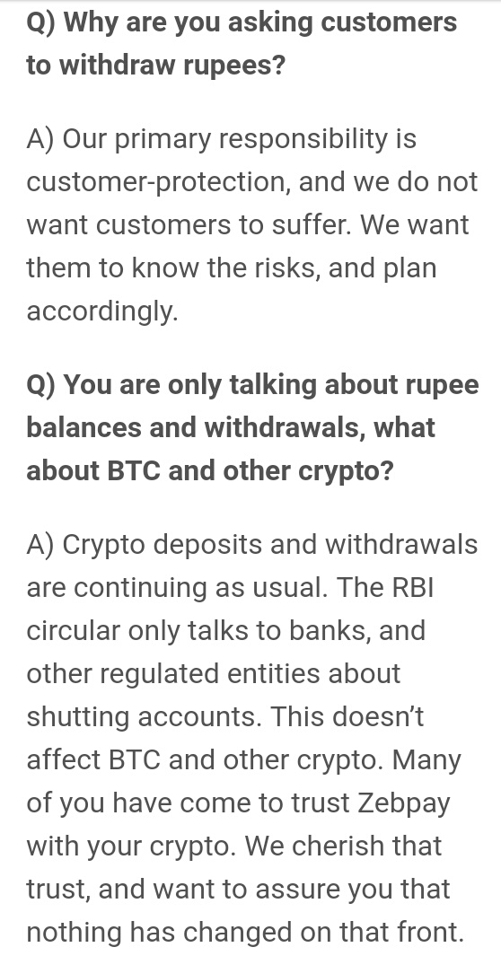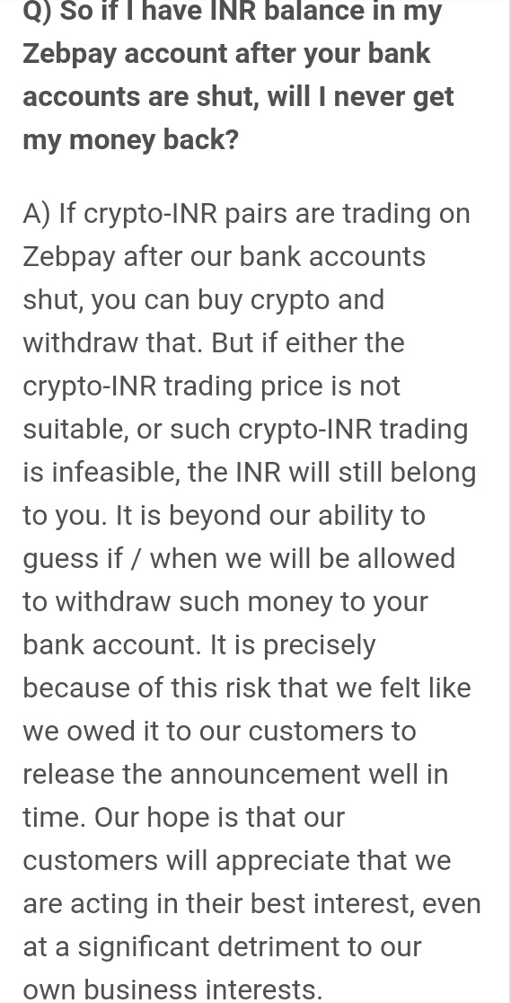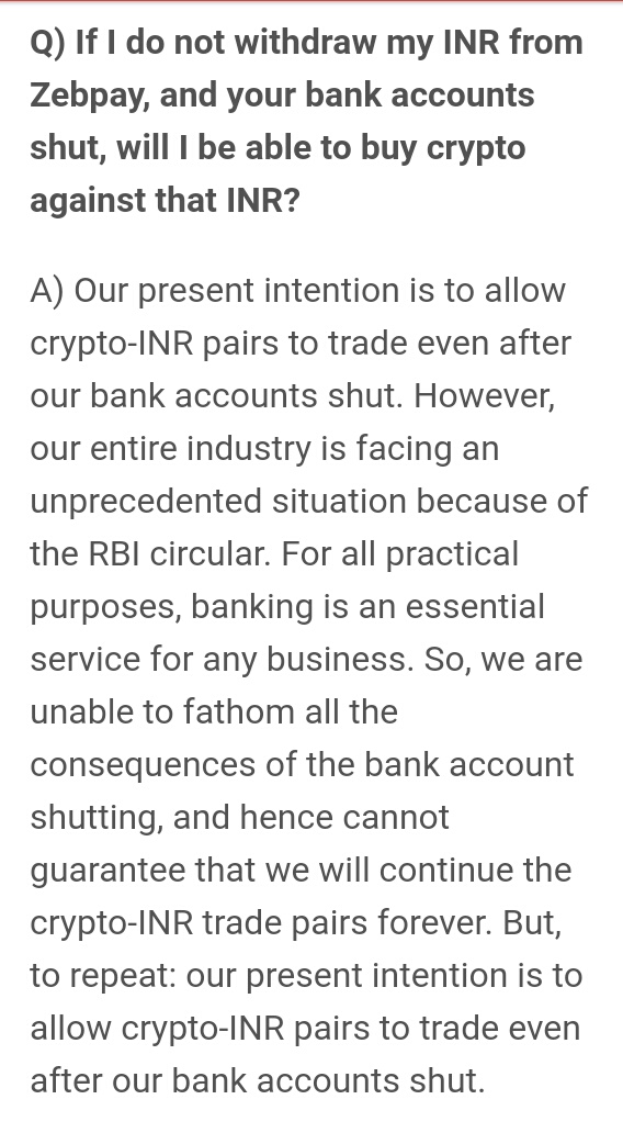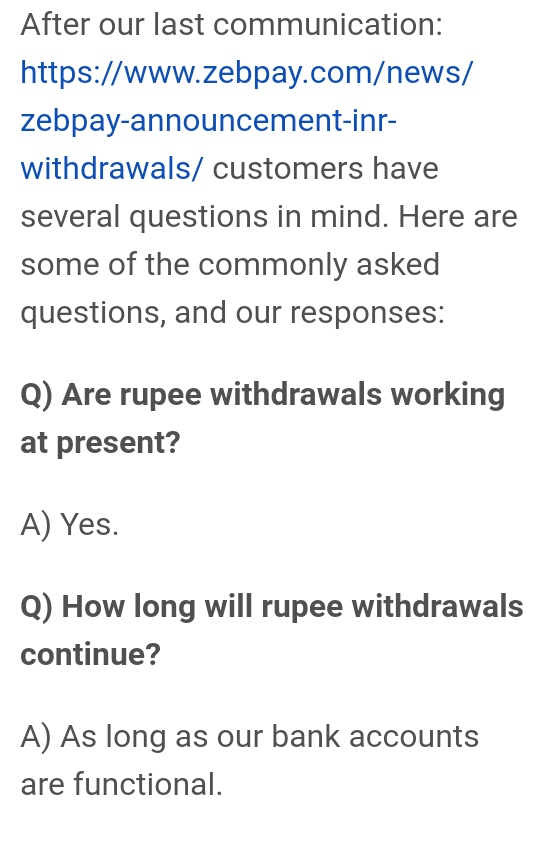 As on 21 June 2018 an update received from zebpay that they can stop withdrawal in INR. So all were in panic.