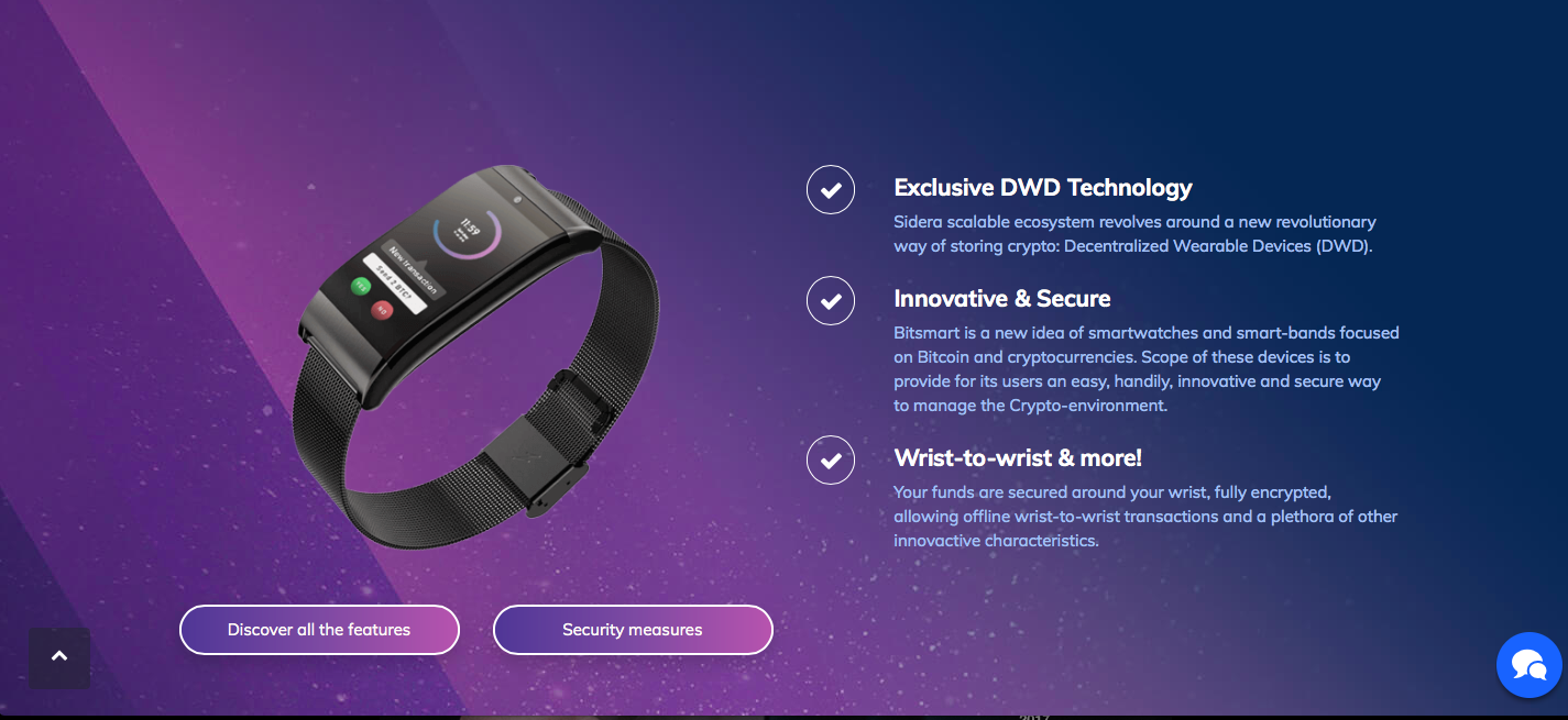 - SIDERA presents the world's first SmartBit hardware wrist watch with OS BitSMART, which inherits the principles of blockchain technology (transparency, autonomy, decentralization of management);