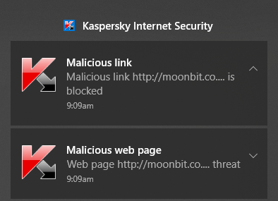 I never use this Moonbitcoin faucet as I get a warning & block from my Kaspersky Internet Security