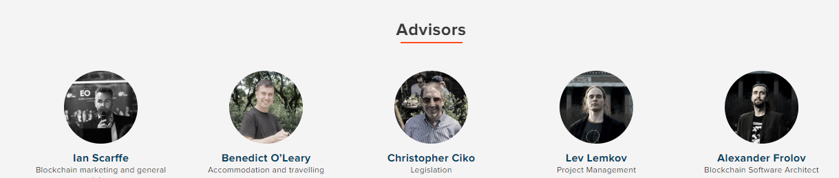 They have 5 advisors, who have a wide range of expertise ranging from blockchain marketing to legal advice to accommodation and travel expert. These are all guys with lots of experience and success in their various fields. Looks like a solid board of advisors.