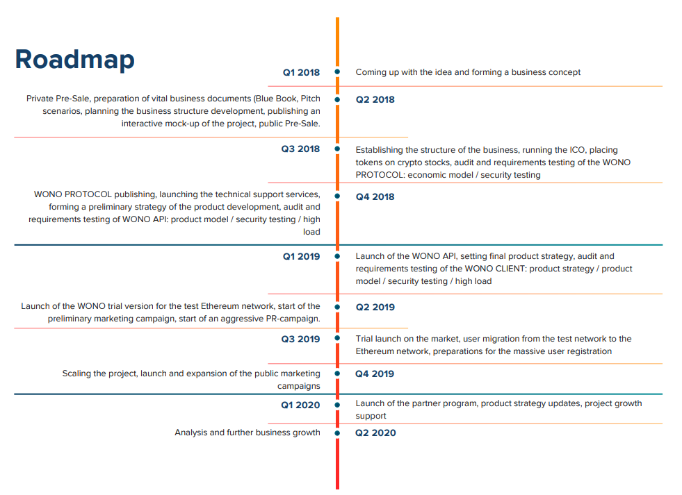 Most of 2018 will be developing their technology and services. Q4 when the WONO protocol will start publishing, so that’s what I would consider their MVP (Minimal viable product). An MVP is important to any Blockchain project, because it proves to the world that their technology is viable. An MVP significantly lowers the risk of investing in a project.
