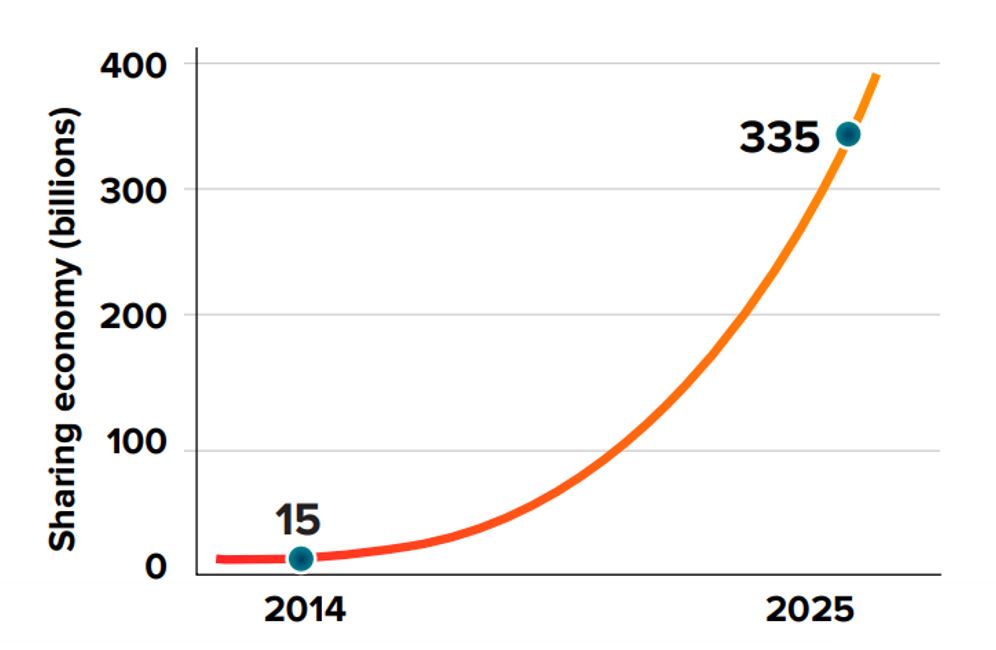 According to a report by PricewaterCooper in 2015, the sharing economy in 2014 generated a revenue of $15 billion and this is expected to increase to $335 billion in 2025. So it’s a huge market with a lot of growing potential.