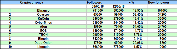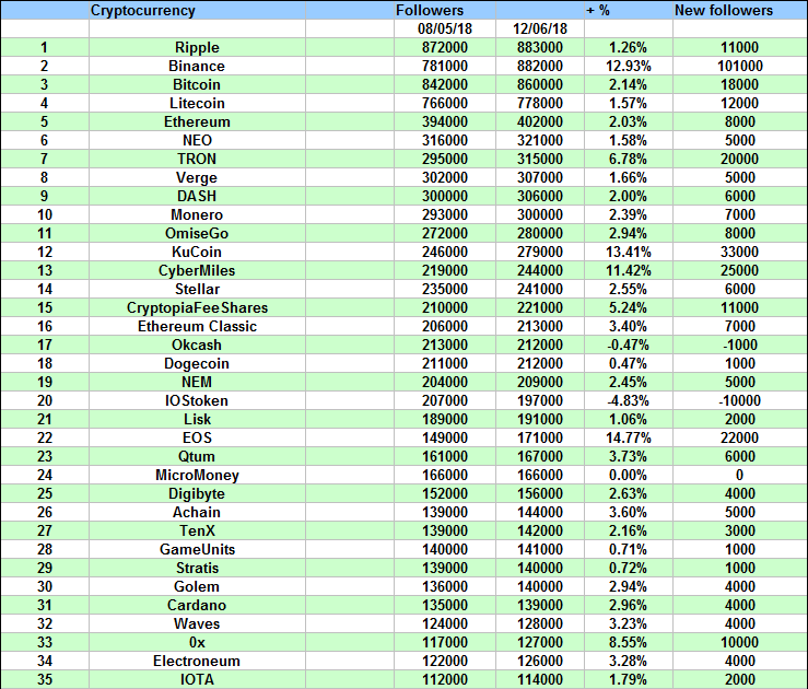 The most popular cryptocurrencies on twitter. (June 2018)cryptorep (47)in #cryptocurrency • 8 years ago TOP 100 with the most followers: The most new followers, TOP TEN: Images from: https://www.pexels.com Have a nice day! #crypto #ripple #binance #bitcoin