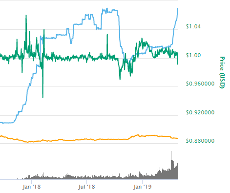 This can erode the faith of Tether. If that happens, holders of Tether could start a bank run and try to convert their Tethers into fiat. Many crypto commentators fear that this can cause the cryptocurrency market to collapse, however I think this is unlikely to happen as the crypto space has growth to enough of a size to be able to absorb this kind of shock. It may cause a pull back in price in the short time, but it would not be as impactful as the Mt Gox was to the price of Bitcoin when it was hacked. At the time of writing Tether appears to be holding steady with no sign of a bank run: