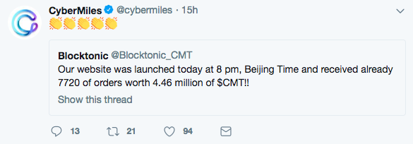 So how can this be real? Well, your CMT tokens are being Staked and held in the system for 300 days. The more is spent on the website the more tokens are being staked and withdrawn from circulation (hence why you are being paid back in ETH instead of CMT). Currently Cybermiles have reported 4.46 million CMT (approx USD 1.7m) worth of sales. This is astonishing as the website has only been launched within 24 hours of writing this article. With the anticipated launch of the Cybermiles mainnet within the next 6 months and with progress in its Roadmap being made, confidence in the project is getting stronger by the day. Blocktonic seems to be just one of many steps in a well planned rollout before the launch of the Cybermiles mainnet.