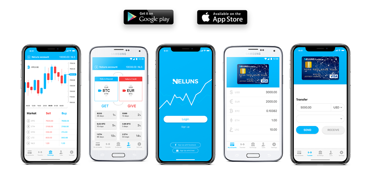The iOS and Android applications will allow you to make all possible trade operations within the Neluns ecosystem: buy and sell cryptocurrencies on the Neluns Exchange in one click, make an interest receiving deposit in the Neluns Bank, receive a loan from the Neluns Bank, provide or receive a loan on the P2P-platform, make transactions anywhere in the world in a matter of seconds.