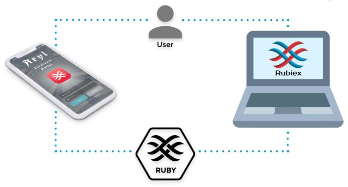 The ecosystem includes: Aryl (mobile application), Rubiex (cryptocurrency exchange), Rubius coins (project currency). As the project grows, system will include new proposed products. Ecosystem combines any computer or mobile devices into a single secure financial platform.