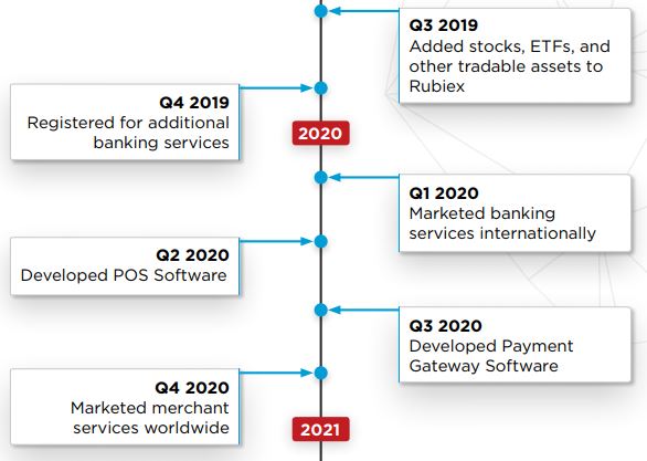 Rubius company plans to develop Merchant software to provide customer service, Rubius Smart Escrow (RSE) and Rubius Smart Loans (RSL) for cryptocurrency introduction into everyday life. Own social network can also see the world.