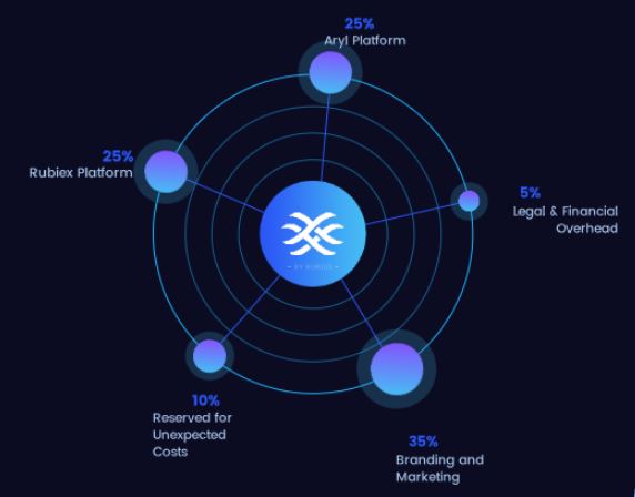 - Rubiex cryptocurrency exchange. You will be able to trade on project's exchange directly in the application Aryl. Users need to register in Rubiex, as well as KYC procedure.