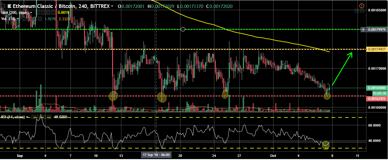 NUEVA FICHA BURSATIL UNITRADINGPRO.. APROVECHEN SEÑAL DE ENTRADA.. ETC/BTC A TOCADO POR CUARTA VEZ SUELO FUERTE LO CUAL INDICA UNA ALTISIMA PROBABILIDAD DE ALSA.. LOS OSOS (VENDEDORES) HAN PERDIDO FUERZA SEGUN ME INDICA EN RSI (INDICE DE FUERZA RELATIVA) LO QUE QUIERE DECIR LOS TOROS VAN A TOMAR EL MERCADO PROXIMAMENTE.. APROVECHAR LA SEÑAL.