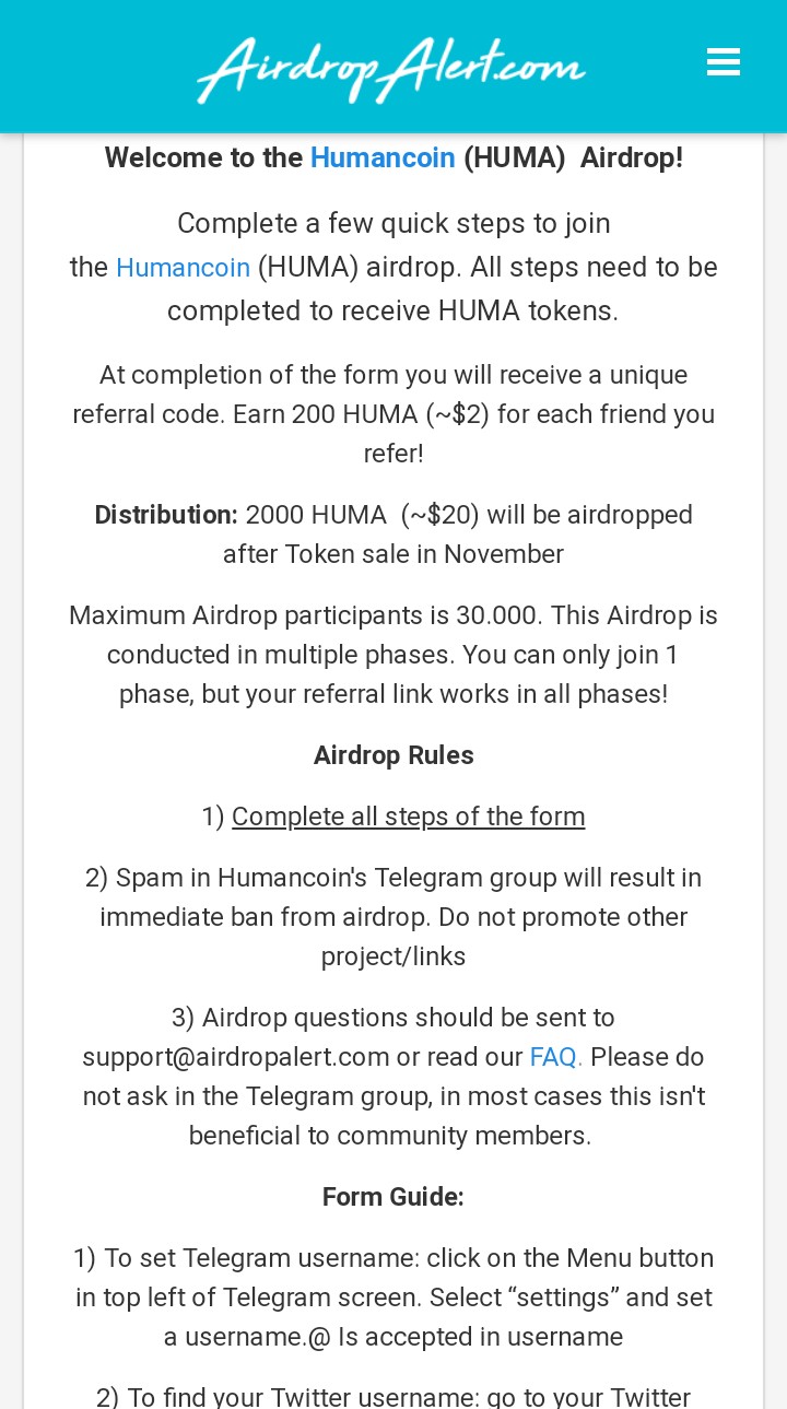 FREE COINS ($20)!!!! - HUMANCOIN (HUMA) AIRDROP