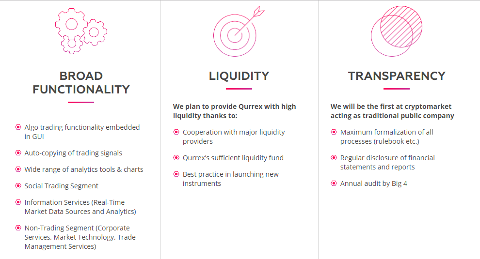 Qurrex is creating the most interesting and simplest made of cryptocurrency exchange known to be the next generation platform with the aim that it will win the trust of professional stock exchange players by improving and increasing the market liquidity and setting a good and comfortable new standard for the exchange of product.