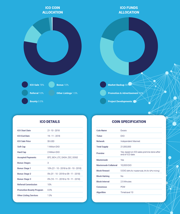The Exosis team understands the risk associated with crypto investment, the high volatility nature of many utility tokens/coins and the importance of having a utility token that is truly functional rather than simply speculative, and that is why they decided to create Exosis Coin (EXO) as a truly functional utility coin, which is achieved by combining five different cryptocurrency businesses into one. These five different platforms will be powered by the Exosis coin (EXO), thus providing great utility for the EXO.