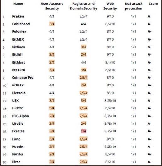 In the report, which is prepared as 10 pages, there are three top traders: Kraken, cobinhood and Poloniex. The first two grades are A, but Poloniex's A-. The list below shows the ranking of the exchanges in this rating. Watch out #Binance is in the top 20 and there's 30.