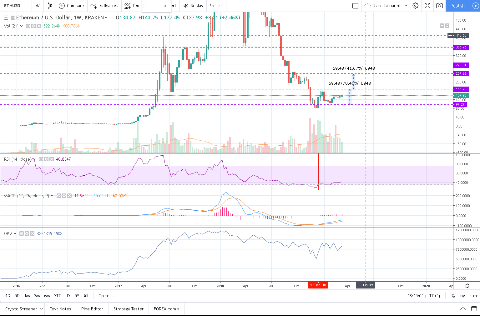 We currently can see in this Picture that we are doing a double bottom Pattern with a Breakout of about 4200$ and a price target of around 5000$.