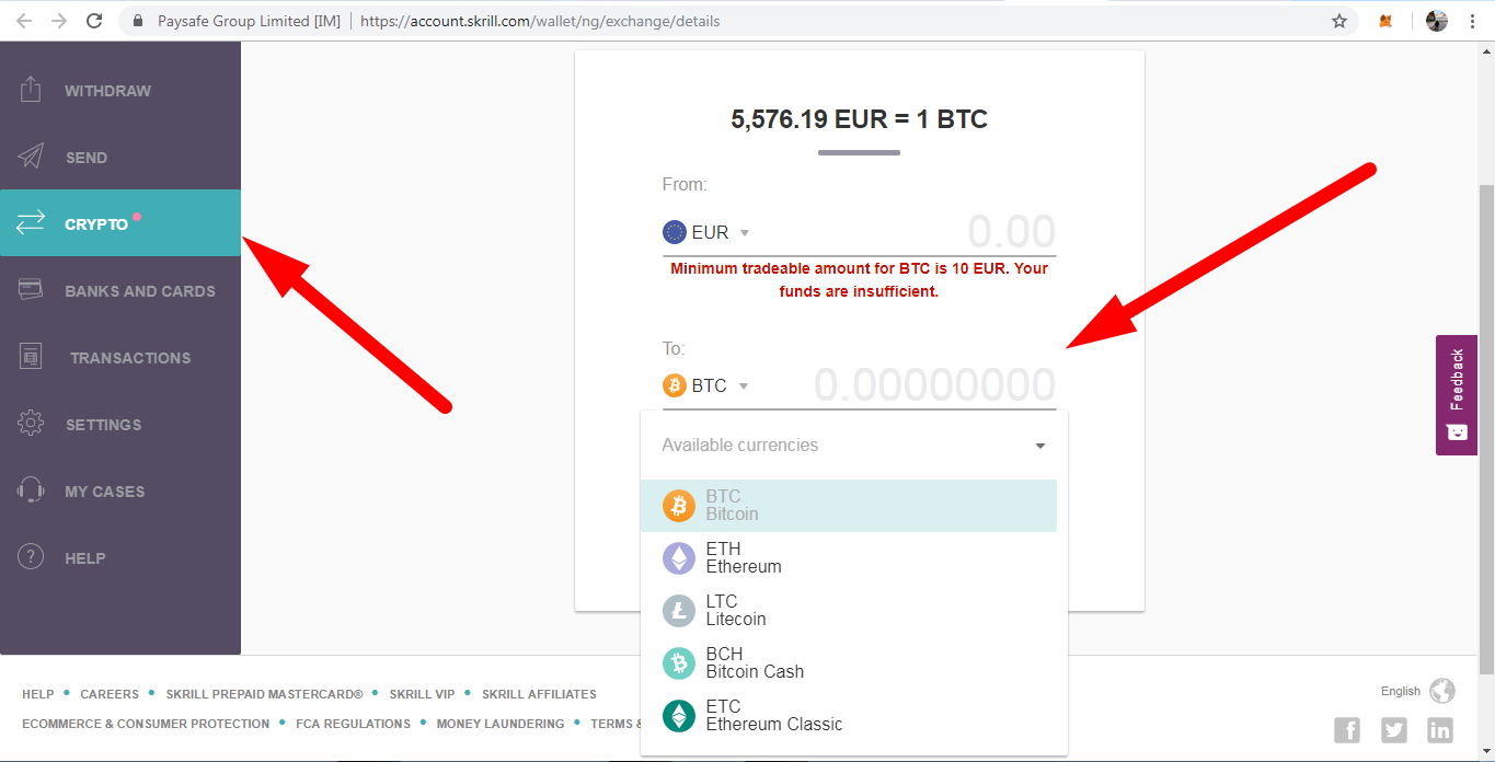 To buy Bitcoin and some altcoins you must register first at Skrill.