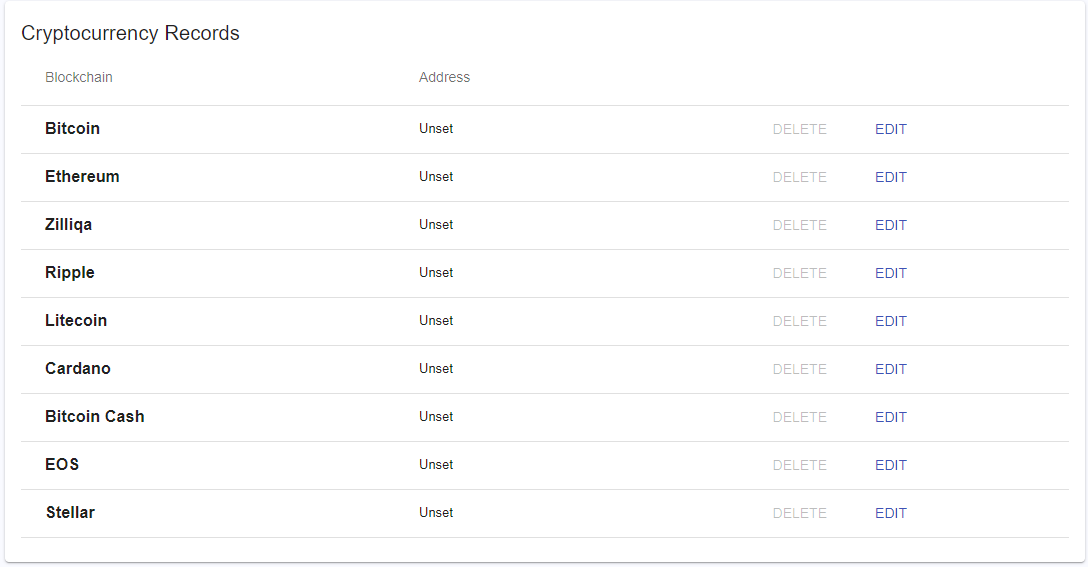After that you will get the following screen to link all your cypto wallets to the one name.