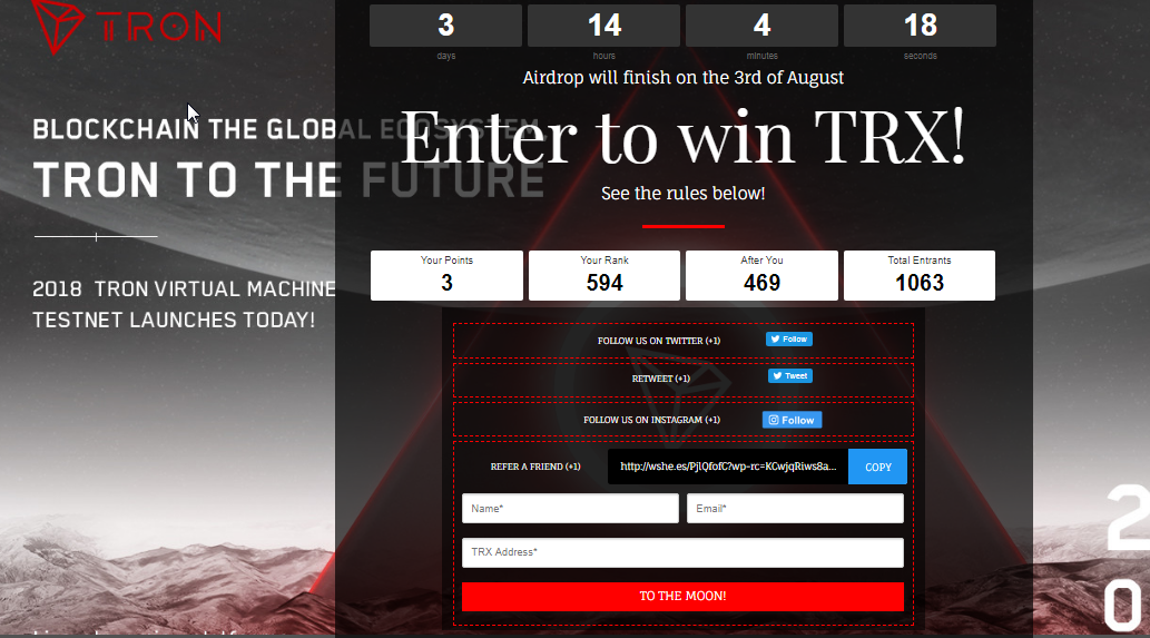 $$$ Chance TO Win TRX $$$india1st (25)in #cryptocurrency • 8 years ago pLEASE FILLOW THE BELOW LINK http://wshe.es/PjlQfofC?wp-rc=KCwjqRiws8aQMyrdtWkMgFXS #bitcoin #tron #moneyguru #cryptoindia