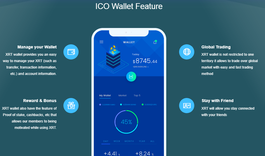 Other than the reward system, the wallet allows borderless trading using your XRT tokens. You manage your own trading account and when the odds are in your favor, you earn more than what you can earn in the traditional mutual fund or stock exchange market.